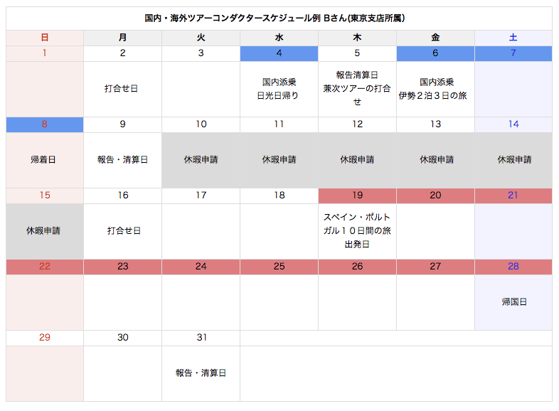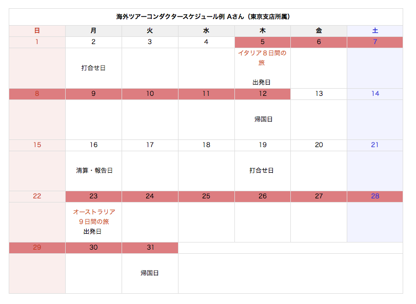 ツアーコンダクターのスケジュール
